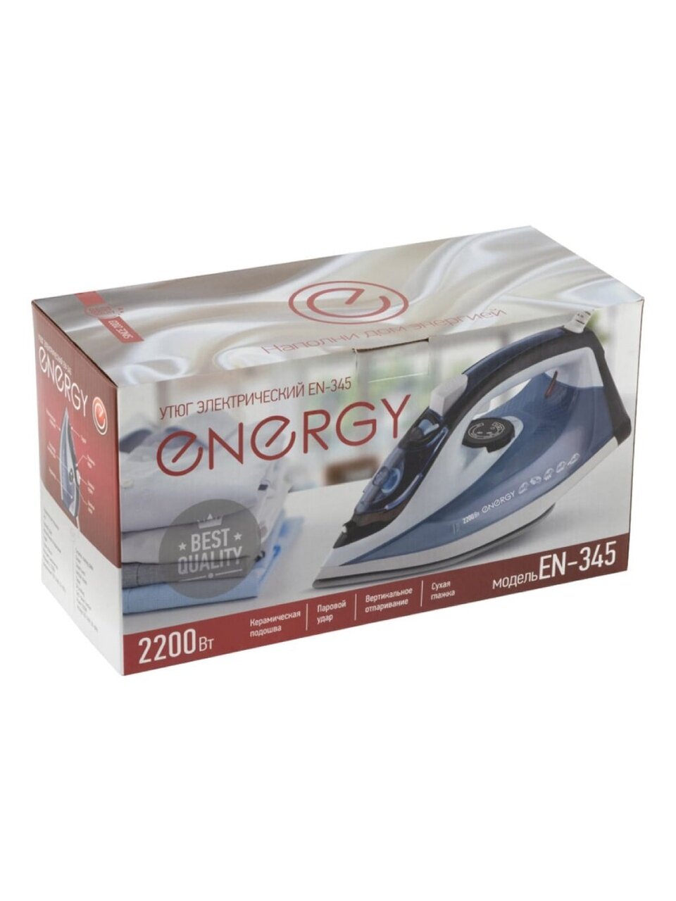 Вы можете приобрести «Утюг Energy, EN-345, 220 Вт, керамика, вертикальное отпаривание, система самоочистки, пар, спрей, удар, 1.5 м, синий» и другие товары в нашем интернет-магазине в Санкт-Петербургe по низким ценам и с бесплатным самовывозом.