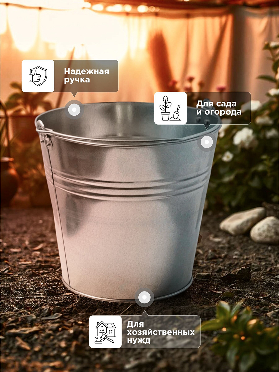 Представляем ведро мет-л, цинк, 12 л, хозяйственное от бренда Шуйская посуда — надежный помощник в хозяйственных делах. Это ведро станет идеальным выбором для тех, кто ценит качество и долговечность. Изготовленное из прочного металла с цинковым покрытием, оно обеспечивает долгий срок службы и устойчивость к коррозии.