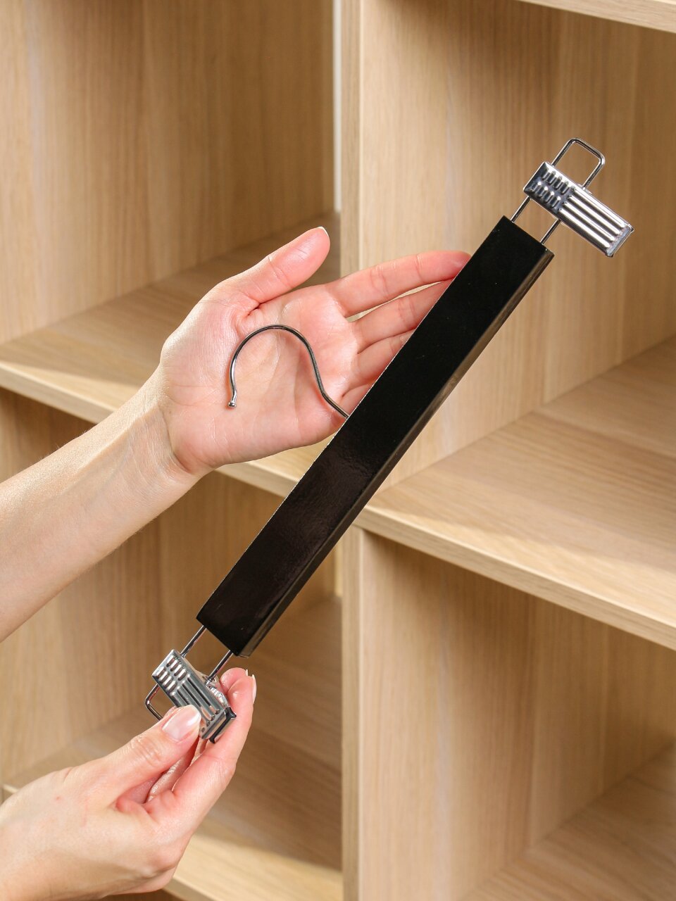 Оформите заказ на вешалку с зажимами для брюк и юбок — получите надежный аксессуар для аккуратного хранения вещей.