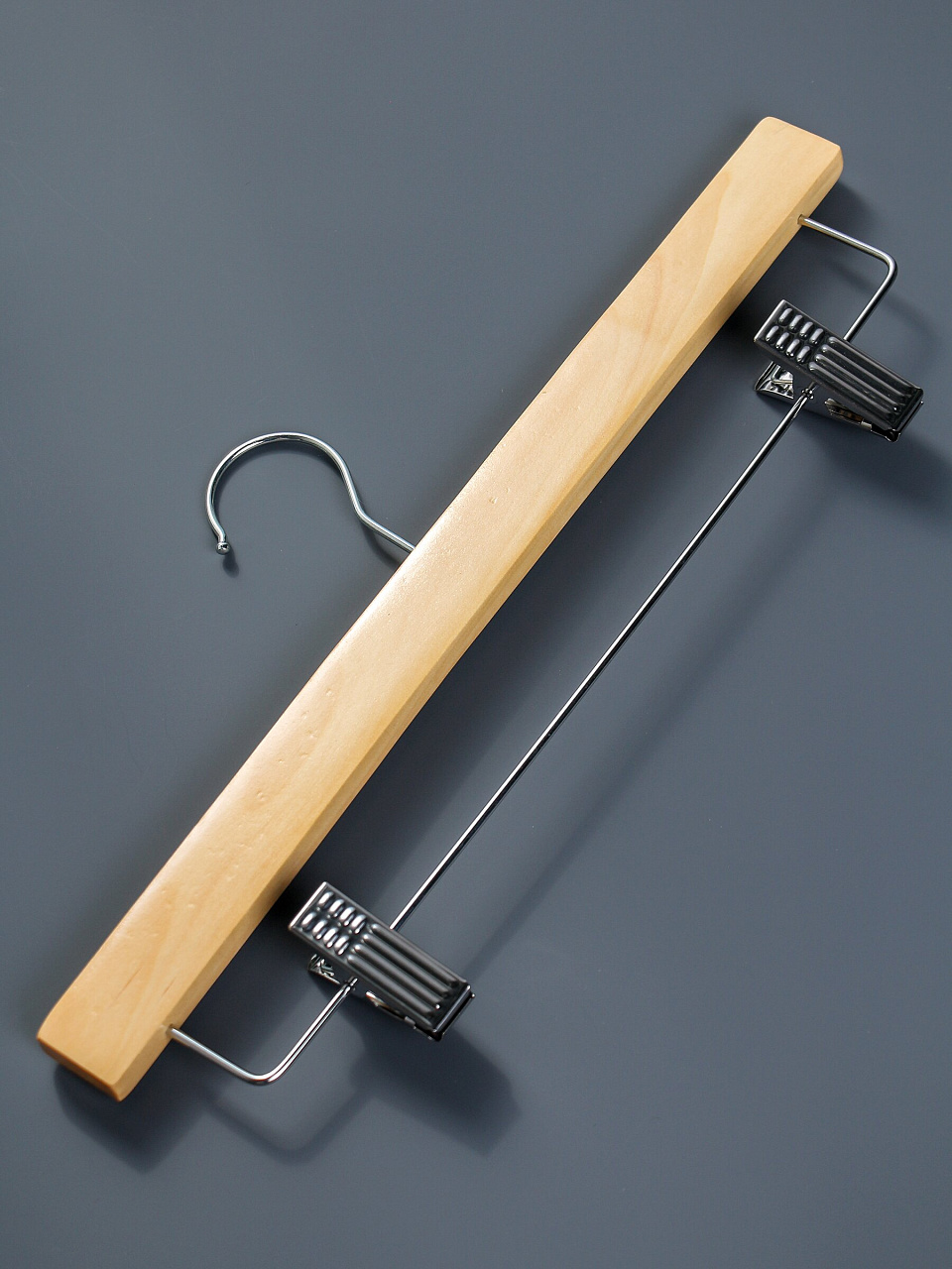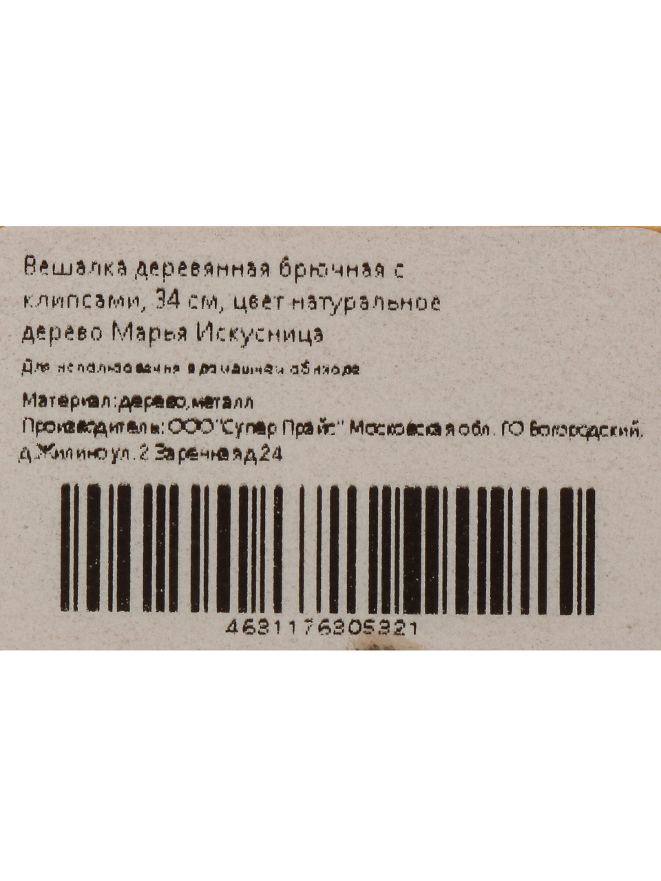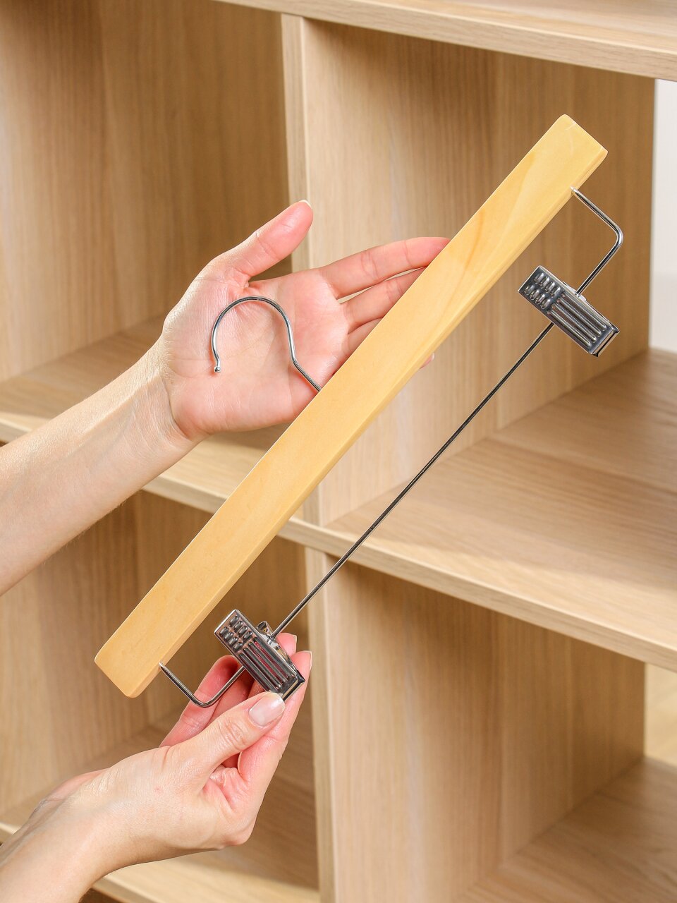 Вешалка с клипсами для брюк из натурального дерева 34 см — идеальное решение для аккуратного хранения одежды дома или на даче. Долговечность, стиль и забота о ваших вещах.