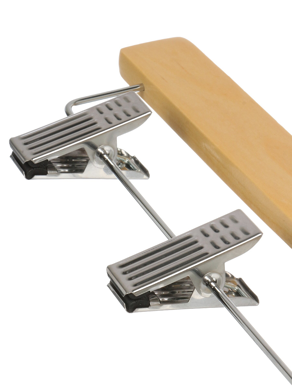 - Надёжная фиксация — металлические клипсы бережно держат брюки, не оставляя заломов.