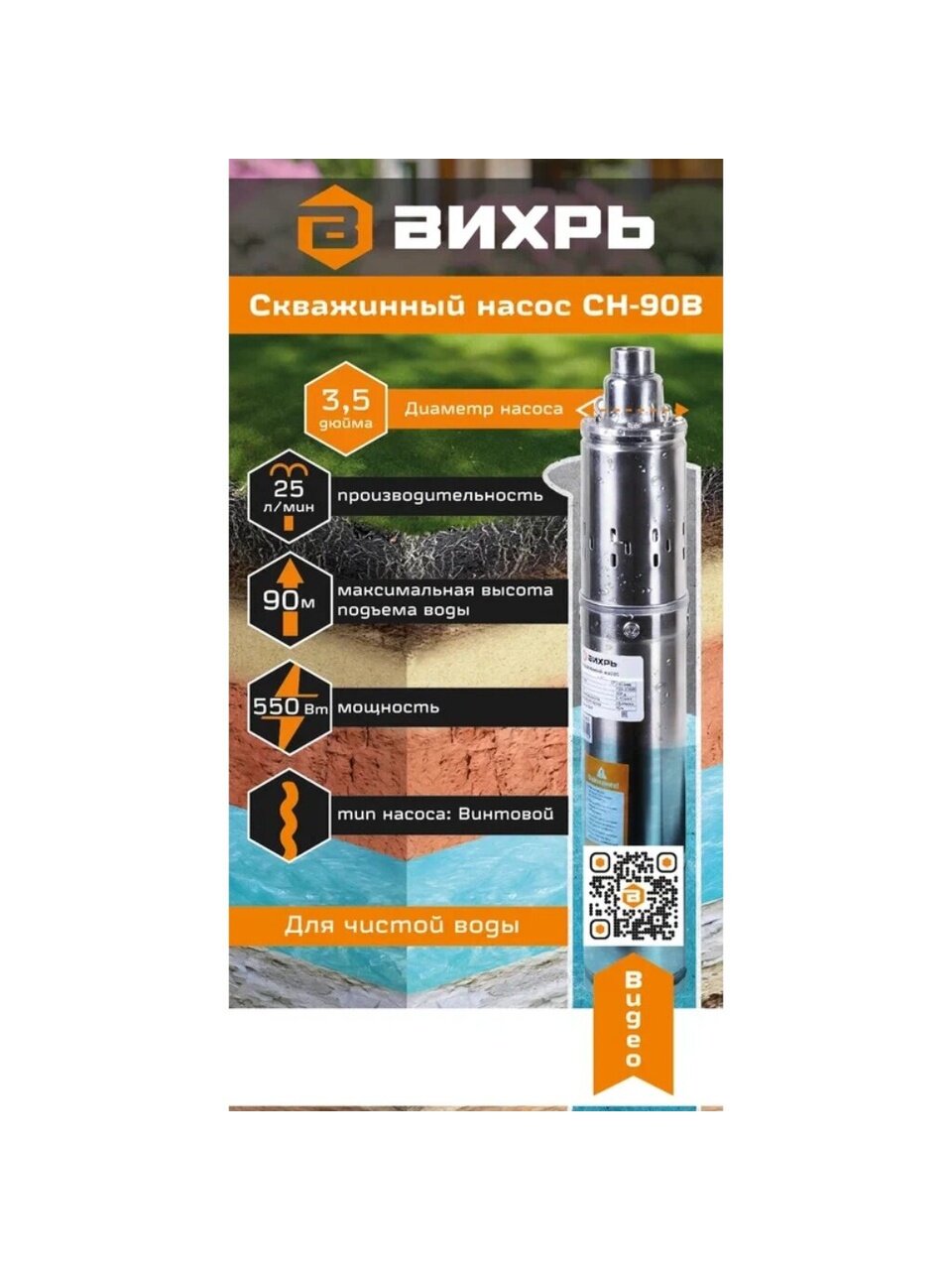 Вы можете приобрести «Насос скважинный, Вихрь, 1 '', нижний забор, 20 м, 550 Вт, диаметр 90 мм, глубина погружения 35 м, максимальный напор 90 м, 1.5 м³/ч, термозащита, СН-90B» и другие товары в нашем интернет-магазине в Белгороде по низким ценам и с бесплатным самовывозом.