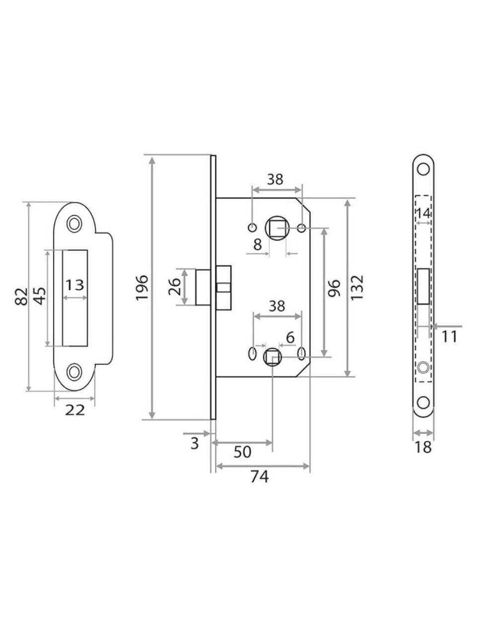 Защелка с фиксацией предназначена для запирания левых и правых дверей, открывающихся как внутрь, так и наружу. Защелка предназначена для установки вместе с дверными межкомнатными или сантехническими ручками (в комплект не входят) с квадратом сечения 8 мм и фиксатором WC с квадратом сечения 6 мм.