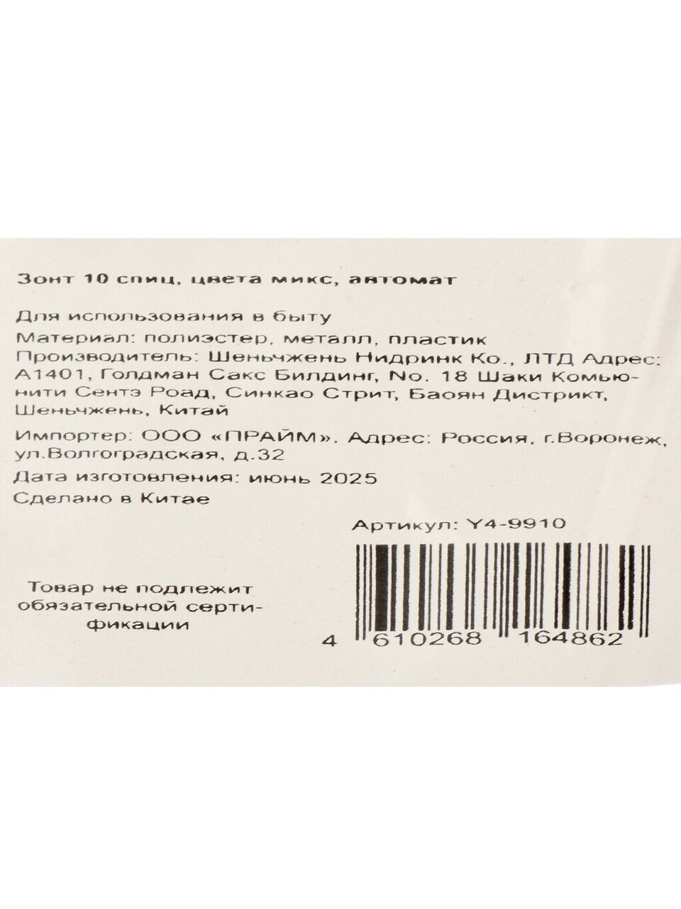 Закажите зонт автомат Y4-9910 по выгодной цене — быстрая доставка, гарантия качества и стильный дизайн доступны уже сегодня!