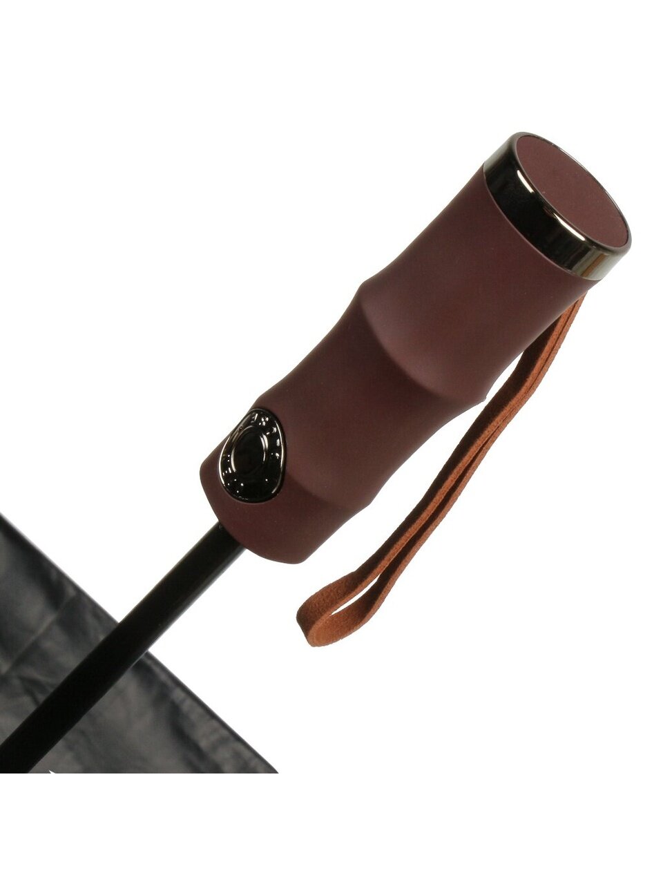 Зонт оснащён 10 металлическими спицами для прочности, ручка выполнена из натурального бамбука, автоматический механизм облегчает открытие и закрытие.